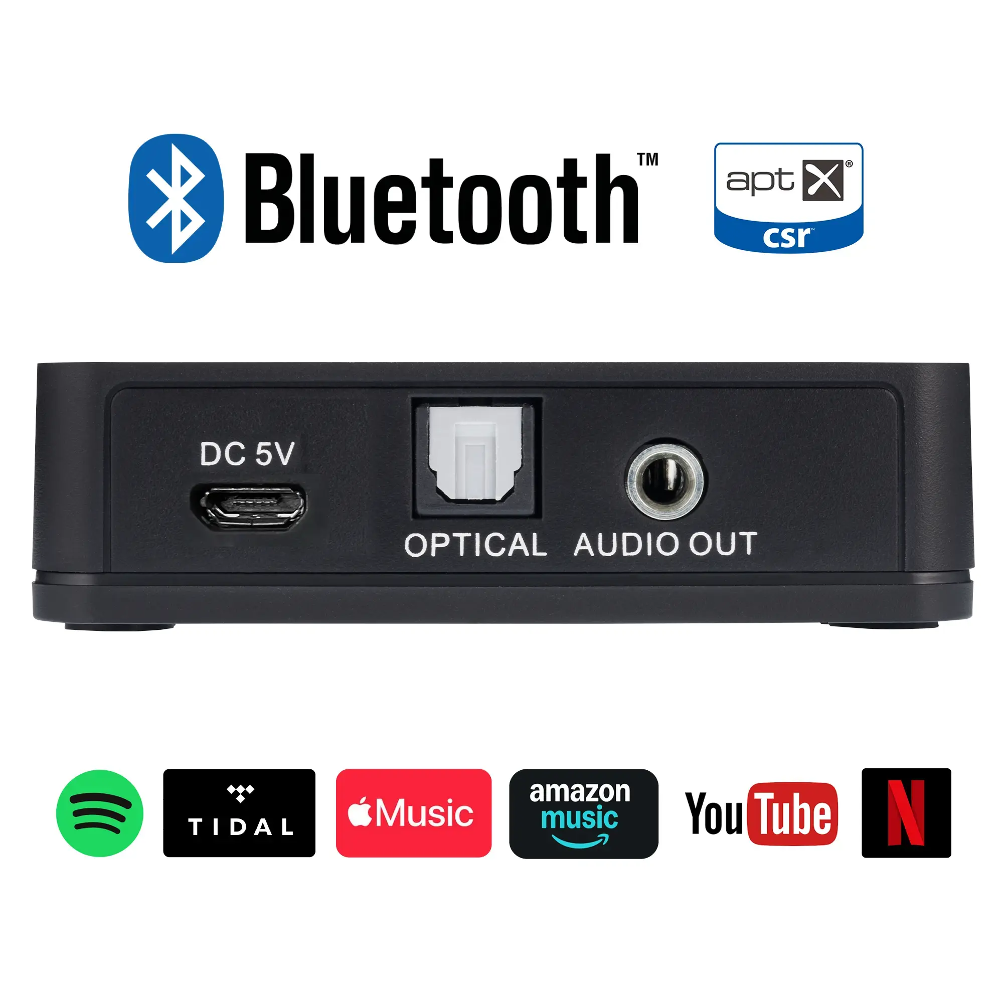 本產品支援 Bluetooth 5.0,相容 aptX、AAC 等高音質編碼格式,提供更低延遲與更高解析的音樂傳輸品質。無論是串流音樂、電視聲音、遊戲音效或影片內容,都能獲得清晰且同步的播放體驗。