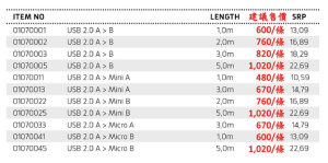 類型:High Speed USB 2.0 Cable