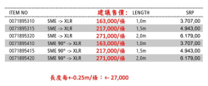• 接頭配置:SME → 2 x XLR