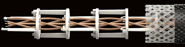 空氣仍舊是導線的最佳絕緣體。它有著低容抗和低損耗的特點。有了NF-2404 AIR的空氣螺旋線身結構,我們比以往更接近純空氣絕緣。與絕緣一樣重要的是均勻的結構。這代表了導線與屏蔽層必須互相保持精準無誤的距離。為達這些需求,我們發展出了個特殊架線活動關節。在訊號線內部裡串連成列,數十個這種架線活動關節組成了支撐框架,將兩個對稱佈置的導線以螺旋狀保持在空中,同時將屏蔽層保持在正確的距離。