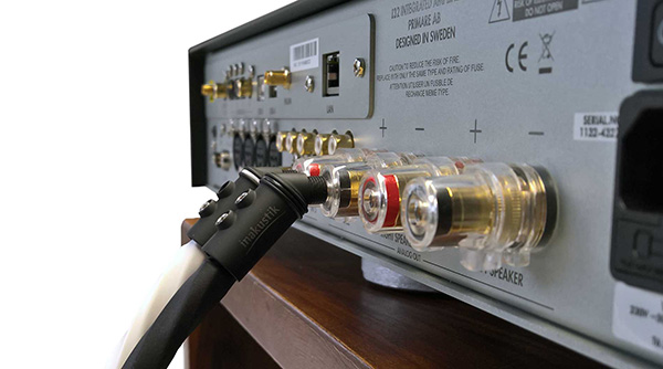 新型 REFERENZ BFA-103 45°香蕉插頭的傾斜形狀插頭,減輕了香蕉接頭本身和擴大機端/揚聲器端香蕉插座上的壓力。 這有助於連接重型HI-END級之喇叭線材,而又不會損壞擴大機端/揚聲器端的香蕉插頭或連接端子。 此外,成45°度斜角的喇叭線,在佈線時亦可節省了擴大機端和揚聲器後面的空間。BFA-103 45°香蕉插頭主體由帶有兩個六角螺絲,一體成形之實心插座組成,因此可以避免因接觸不確實導致有額外的阻抗發生。BFA-103 45°之鍍銠層使得接頭表面相當堅固,適用於 in-akustik REFERENZ 喇叭線或他牌橫截面大於 10 mm² 或直徑最大為 7.5 mm 的喇叭線。