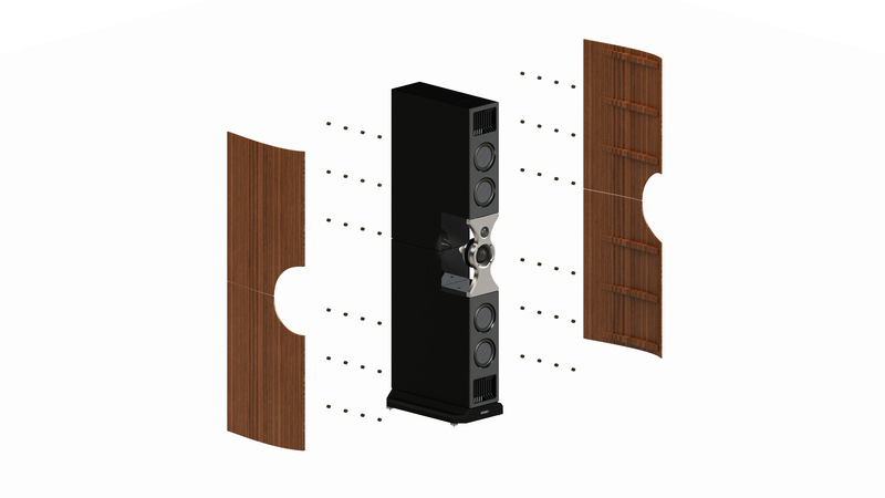 上述研究於是催生了揚聲器中央模組這個獨特設計,我們稱之為「窩巢」,特別用來安置中音與高音單體。「窩巢」由一整塊鋁合金銑削而成,與揚聲器的音箱分離,以避免多餘的能量從fenestria無比有力的低音單體和從傳輸線傳遞至「窩巢」,甚至影響「窩巢」裡其他單體的正常工作。這即是一個音箱結構體因應功能性而最適化的最佳典範。fenesria音箱的抗振材料本身亦被確實固定住,以降低多餘震動。
