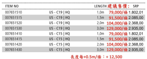 • 接頭規格:NEMA 5-15P 至 C19,接頭表面鍍銠處理(Rhodium-coated)